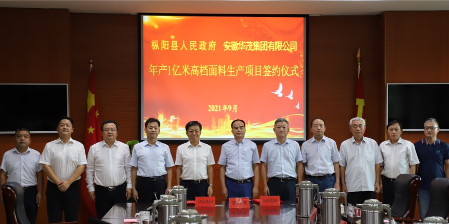 金秋時(shí)節(jié),碩果飄香。在國慶佳節(jié)來臨的喜慶日子,9月30日下午,華茂集團(tuán)年產(chǎn)一億米高檔面料生產(chǎn)項(xiàng)目在樅陽縣政府簽約。樅陽縣委書記楊如松,縣委副書記、縣長楊秀頎,縣委副書記楊賢招,縣委常委、縣經(jīng)開區(qū)黨工委書記、管委會(huì)主任梁鍵,副縣長方勤儉,集團(tuán)黨委書記、董事長、總經(jīng)理倪俊龍,集團(tuán)黨委副書記、股份公司總經(jīng)理左志鵬,股份公司副總經(jīng)理胡孟春出席簽約會(huì)。