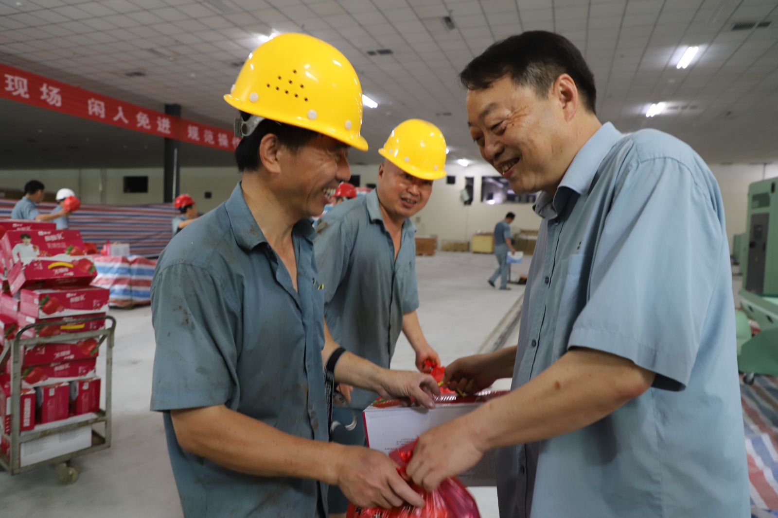 7月24日是大暑的第二天,驕陽似火,悶熱異常,集團(tuán)黨委副書記、工會主席劉春西帶著公司領(lǐng)導(dǎo)班子的牽掛,來到一分廠建設(shè)工地送清涼。